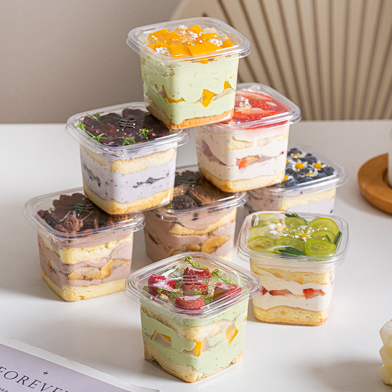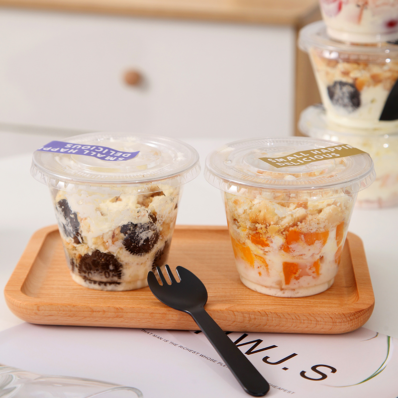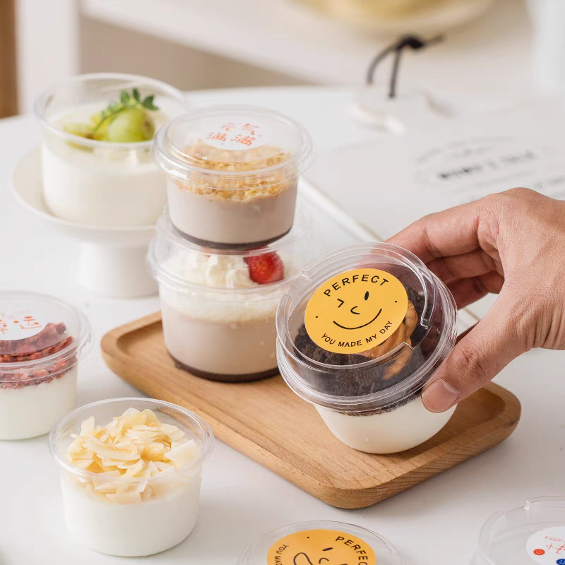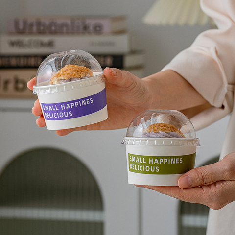 Vasos de papel de hojaldre desechables de alta calidad Cajas redondas de embalaje de panadería Mini cuencos de papel blancos con tapas de cúpula de PET