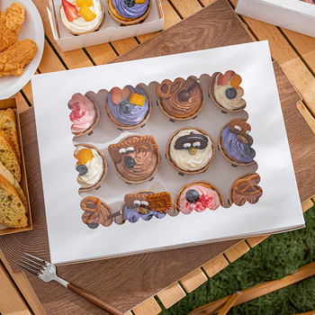Embalaje de papel blanco Muffins 2/4/6/12 Cajas de transporte de panadería para pasteles con capacidad para 12 contenedores de cupcakes con ventana