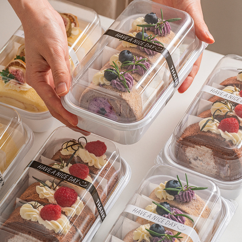 Cajas de embalaje personalizadas para panadería, rosquillas, magdalenas, contenedores para llevar, cubierta transparente de PET, cartón blanco para pasteles, cajas para llevar